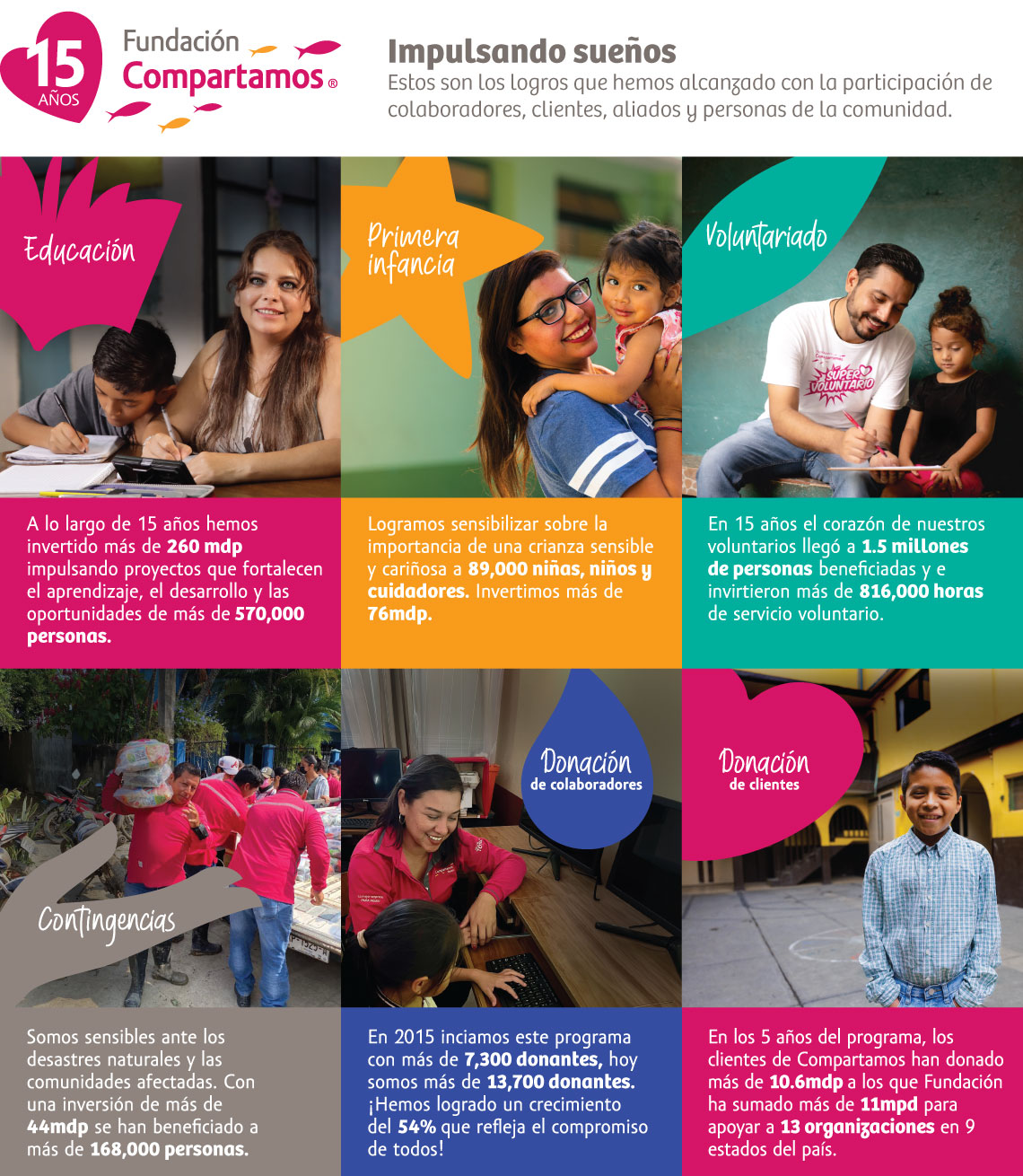 Nuestras causas son la primera infancia y la educación. Nuestras líneas de acción son la forma en la que los colaboradores de Gentera pueden participar: donación, voluntariado y apoyo en contingencias